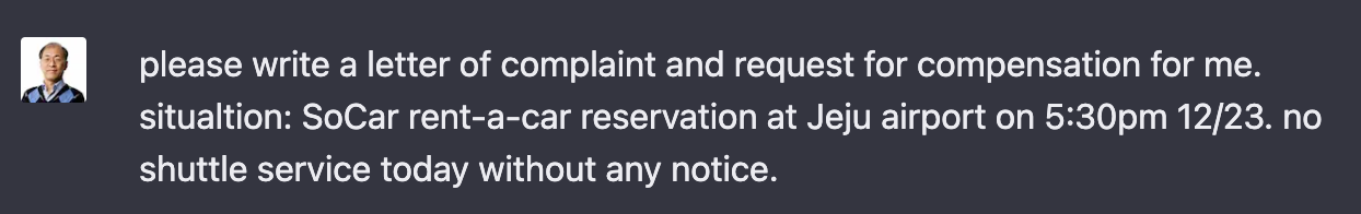 4. ChatGPT에게 한글로 상황을 설명하고 항의와 보상 요청 편지를 써달라고 했더니, 도저히 쓸만한 품질의 문서가 만들어지지 않아 여러 차례 시도하다 포기.