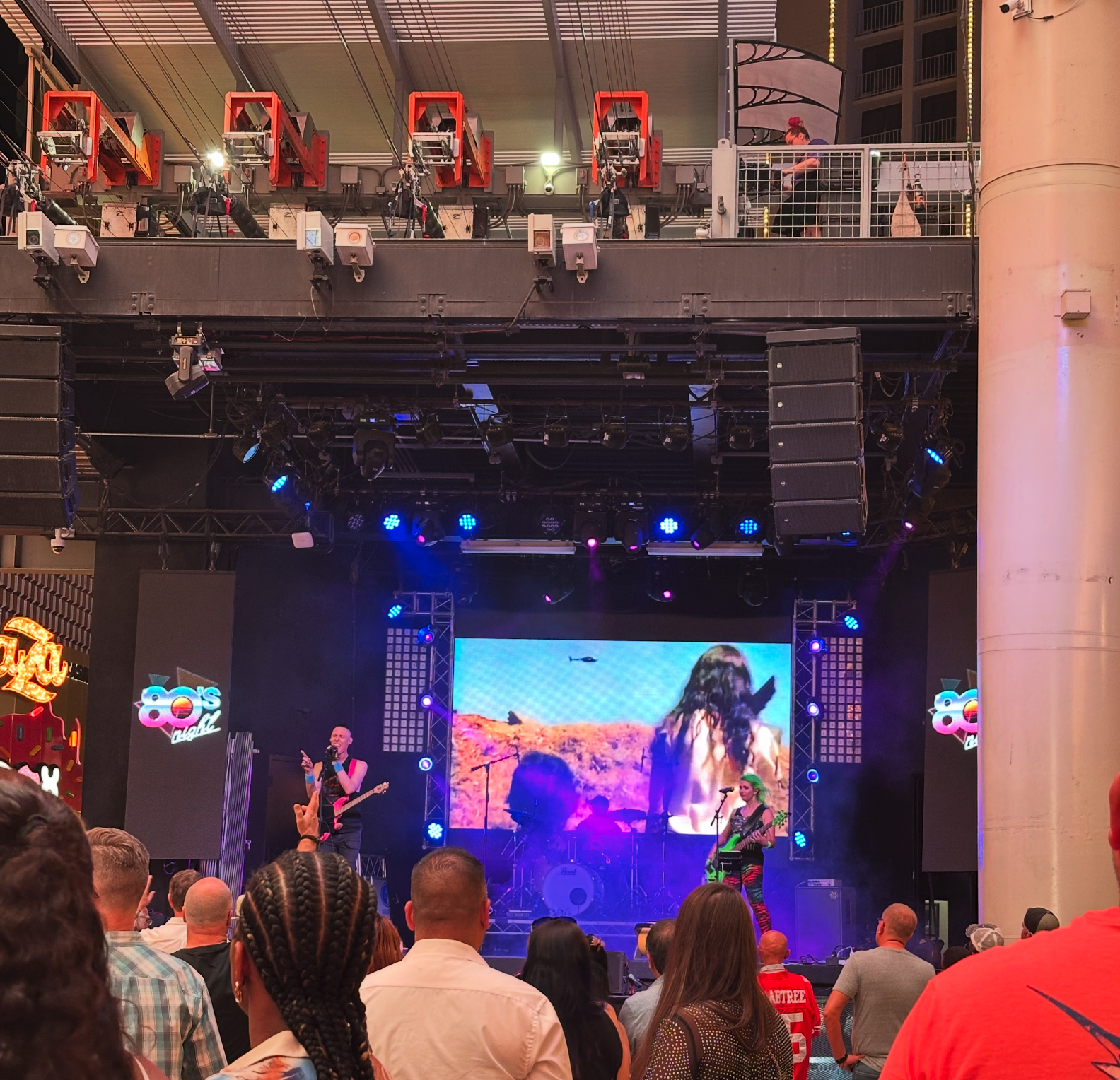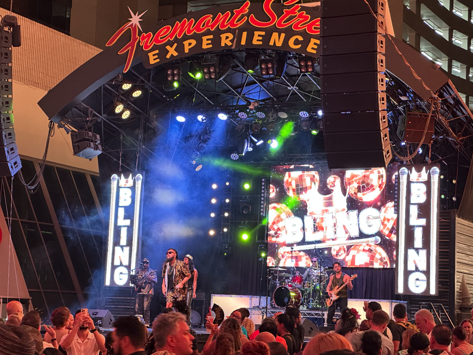 Fremont 거리에선 매일 저녁 여러 무대에서 동시에 Dancing DJ 쑈, 라이브 밴드 공연등 새벽 2시까지 한다. 인터넷에 찾아보면 일정표와 출연 밴드도 나왔있다. Fremont Street에 붙어있는 호텔에서 예전에 한번 잔 적이 있는데 엄청 시끄러워, 이번엔 작은 한 블록 떨어져 있는 Downtown Grand 호텔에서도 Fremont 거리와 가장 먼 빌딩의 방을 잡았다는..