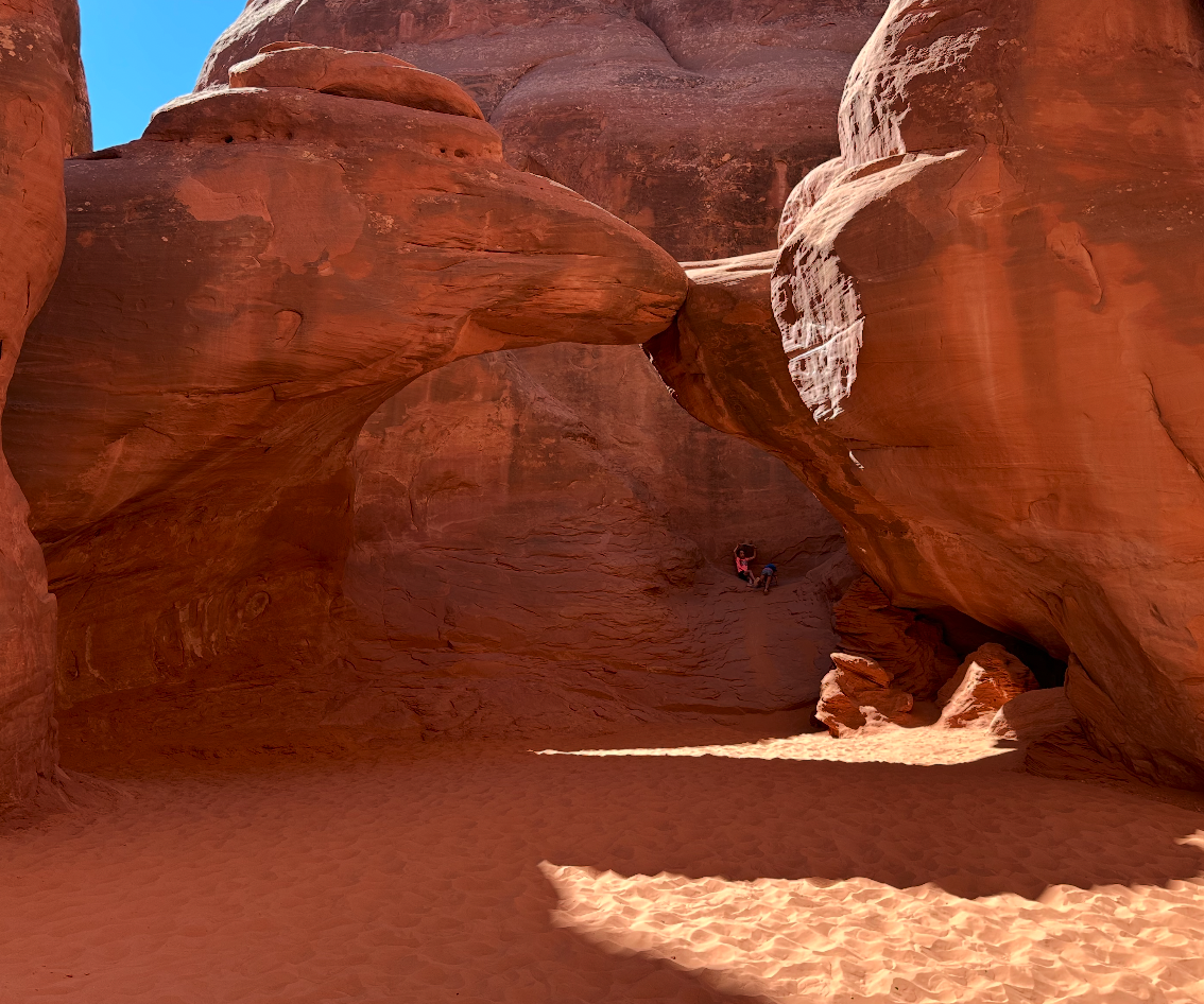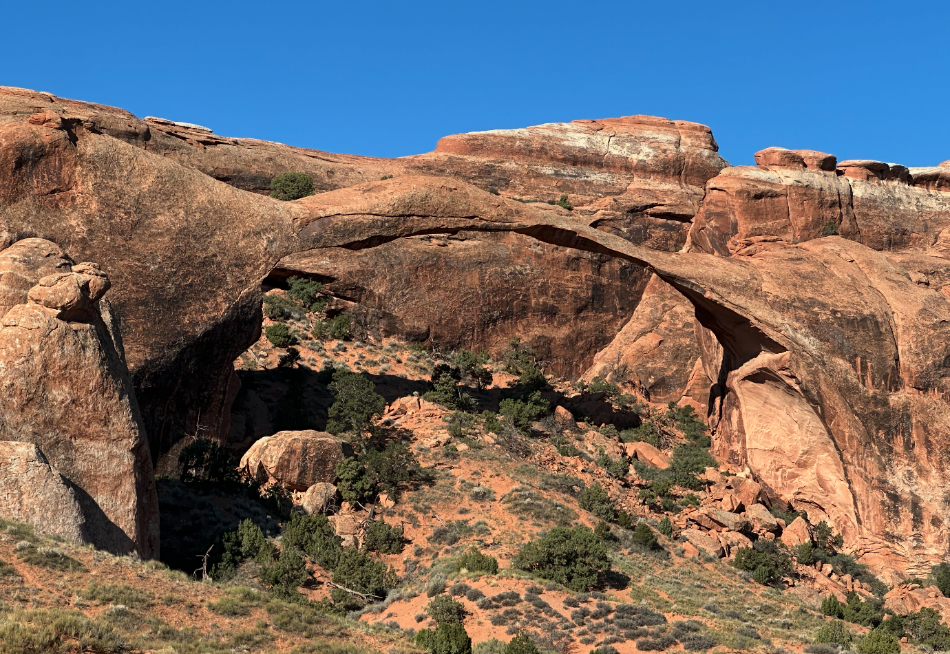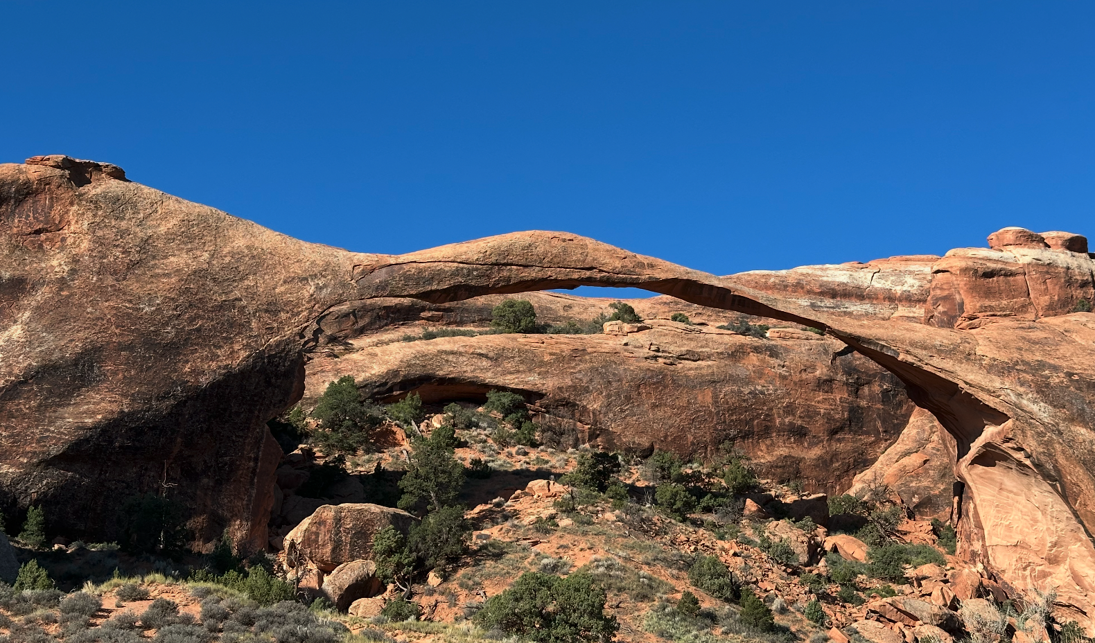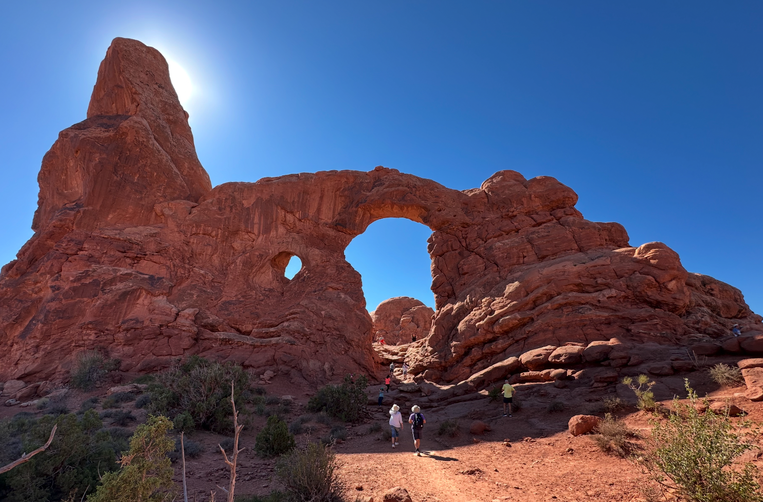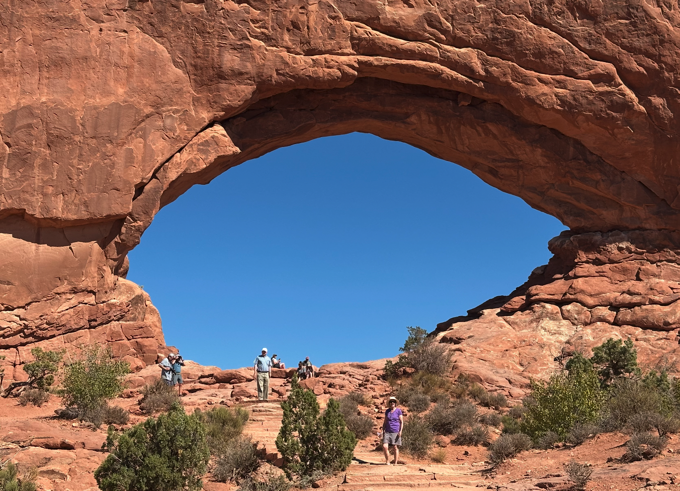 Arches Canyon은 구멍 뚫린 바위(arch)가 많은 국립공원이다. 멋진 아치를 보려면 꽤 많이 걸어야 한다. 이번 여행 중 가장 많이 걸은 곳이다. 또 귀한 곳인지 주차 문제 때문인지 시간대 별로 입장하는 자동차 수도 예약을 받는다. 국립공원 사이트에서 예약을 받고, 방문 전날에도 slot이 열린다. 9시 입장 가능한 예약을 했는데 8시반 정도에도 들여보내 주었다. 여기도 완전 멋진데, 완전 더 땡볓이다. 먹을 거 파는 곳 자체가 없다. 역시 차로 가면서 포인트를 구경하고, 트래킹하고 한다.