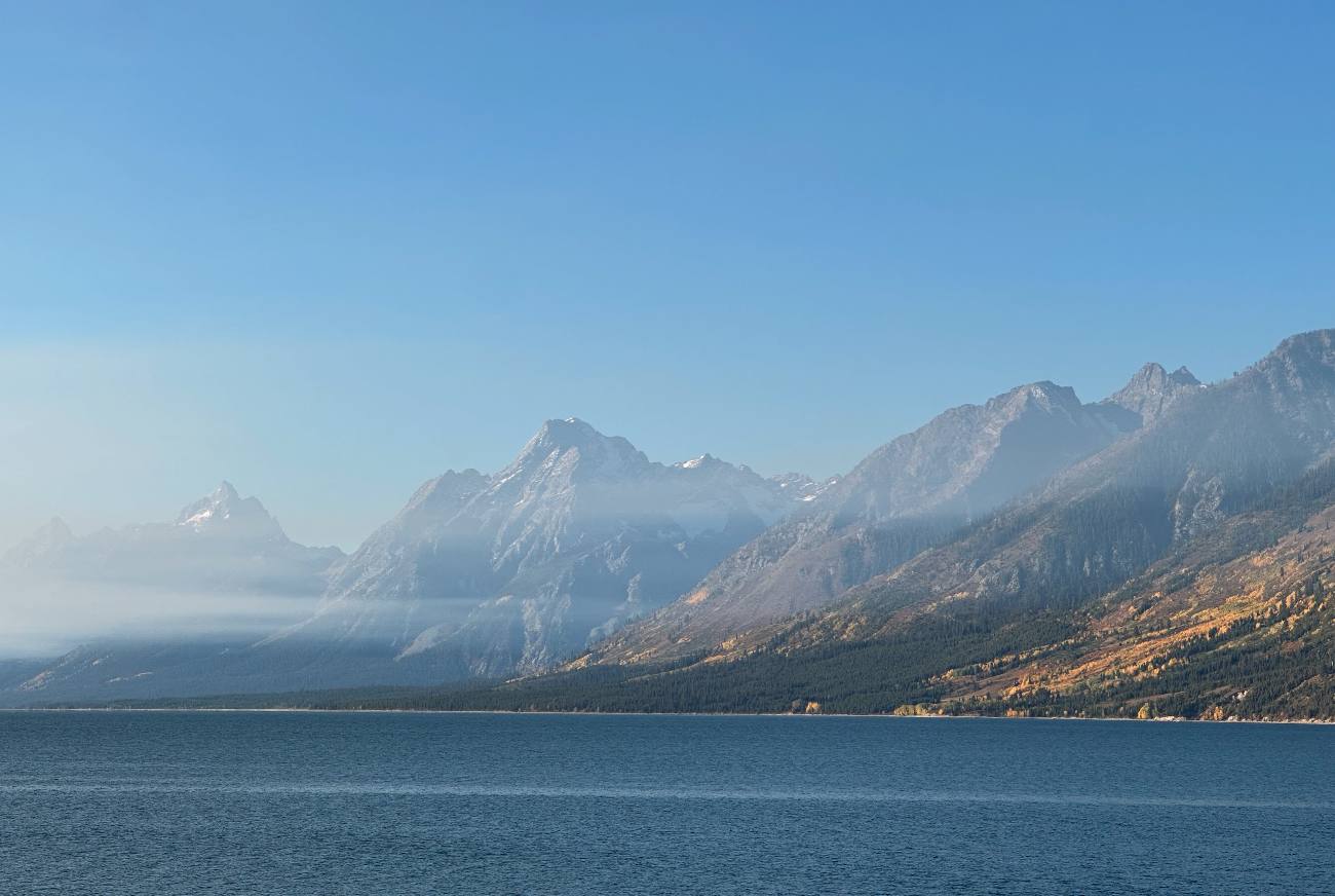 Grand Teton ('그랑 테턴' 이라고 발음하던..) 은 옐로우스톤 아래 바로 이어져 있는 국립공원이다. 엘로우스톤 왔던 사람들이 잠시 시간내서 보고 가기도 한단다. 우리는 계속 내려가야 하기 때문에 아침에 옐로우스톤을 떠나 이곳으로 왔다. 출발할 때 옐로우스톤 호수 때문에 안개가 심하게 끼어 있었는데 Grand Teton 쪽으로 오니 먼 곳의 산불 연기가 흐리게 깔려 있었다. 호수 뷰가 이 동네 명물이라던데 약간 뷰가 망가지기는 했다. 그럼에도 불구하고 충분히 멋졌다. 스키 리조트 동네인 잭슨 홀의 3,000m 조금 넘는 산 꼭대기로 가는 트램을 미리 예약했는데 산불 연기 때문에 걱정했으나. 연기는 모두 땅 가까운데 깔려 있어 멋진 뷰를 볼 수 있었다. 맑거나 흐리거나 연기가 자욱하거나 트램은 강추다.