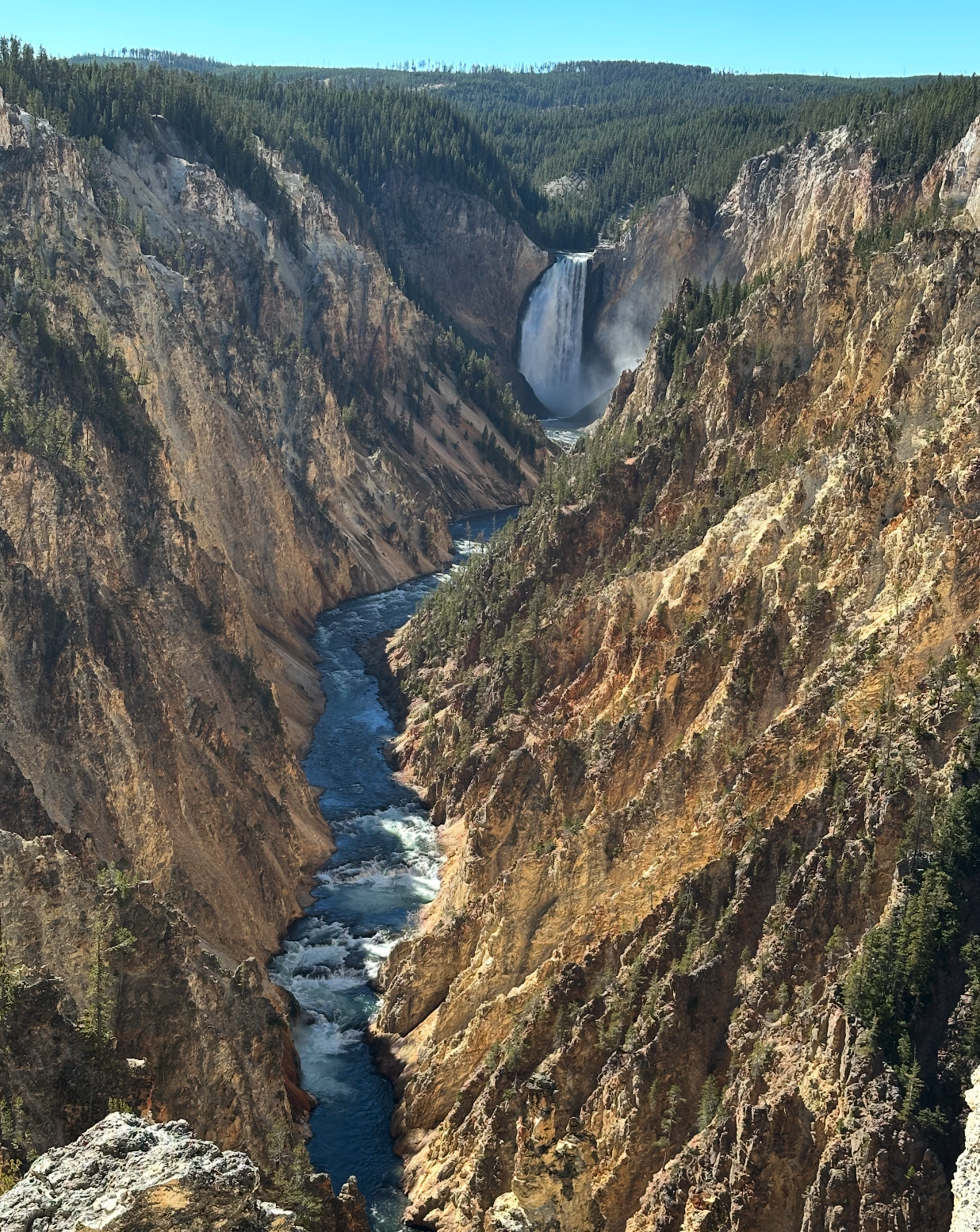 다음은, 엘로우스톤에서 예상하지 못했던 광경, 그래서 가장 인상적인 건 폭포인데.. 너무 비현실적인 비쥬얼이었다. 폭포와 주변 바위가 이렇게 예쁠 일인가? 내 생각에 누가 뭐래도 옐로우스톤에서 가장 멋진 곳이다. 시간이 없다면, 다른 건 사진으로 본다해도 여긴 꼭 가보시라. 주차장 옆 뷰 포인트에서만 봐도 되고, 그리 길지 않은 트래킹 코스를 따라가 면 폭포 근처 절벽까지 갈 수 있다. 가면서 보는 다양한 풍경이 멋지다. 그 트래킹 코스 건너편에 폭보 바로 위로 가는 짧은 가파는 트래킹 코스도 있는데 거길 가지는 않았지만, 이 폭포는 멀리서봐야 멋있다.