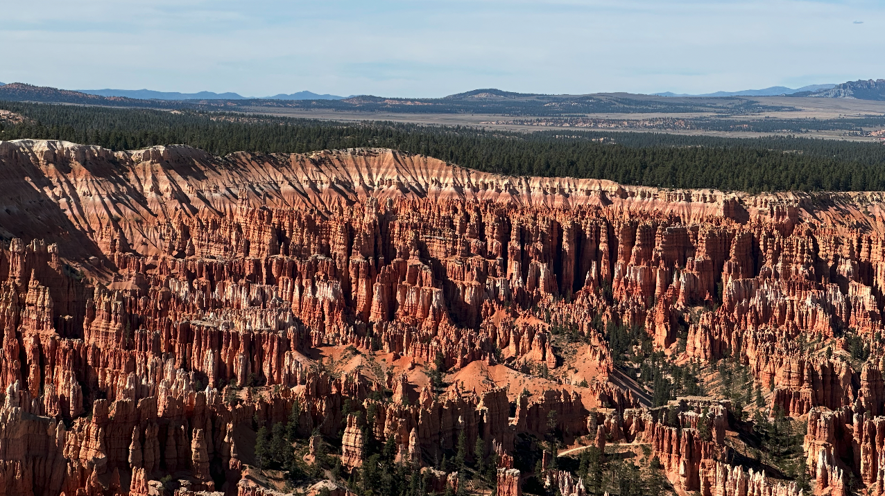 Bryce Canyon은 눈-비-풍화 작용으로 바위들이 녹고 닳아 기둥처럼 서 있는 곳인데, 해뜰 때와 해질 때가 제일 멋있단다. 해뜨는 시간은 오전 7시, 전날 새벽에 일어나 운전하고 난데없는 등산을 한 마당에 포기하고 오전에 갔다. 굳이 해뜰고 질때 안와도 충분히 멋진 풍경이다. 겉에서 보고, 바위들 사이 트래킹도 하고, 높은 곳에서도 보고 매우 인상적인 곳이다. 이게 말로 설명이 잘 안된다.