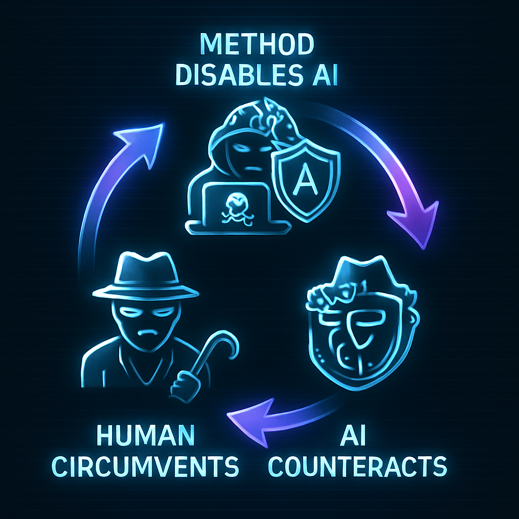 인간이 AI를 무력화 하는 방법과 가능한 AI의 대응, 그리고 그걸 우회하는 방법을 만들어달라고 했는데,