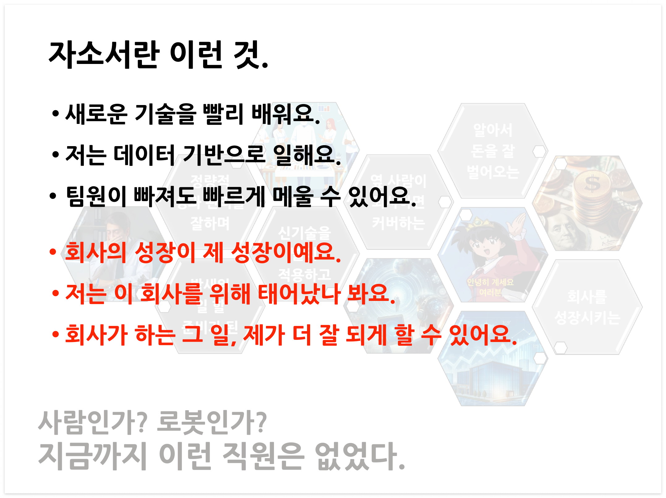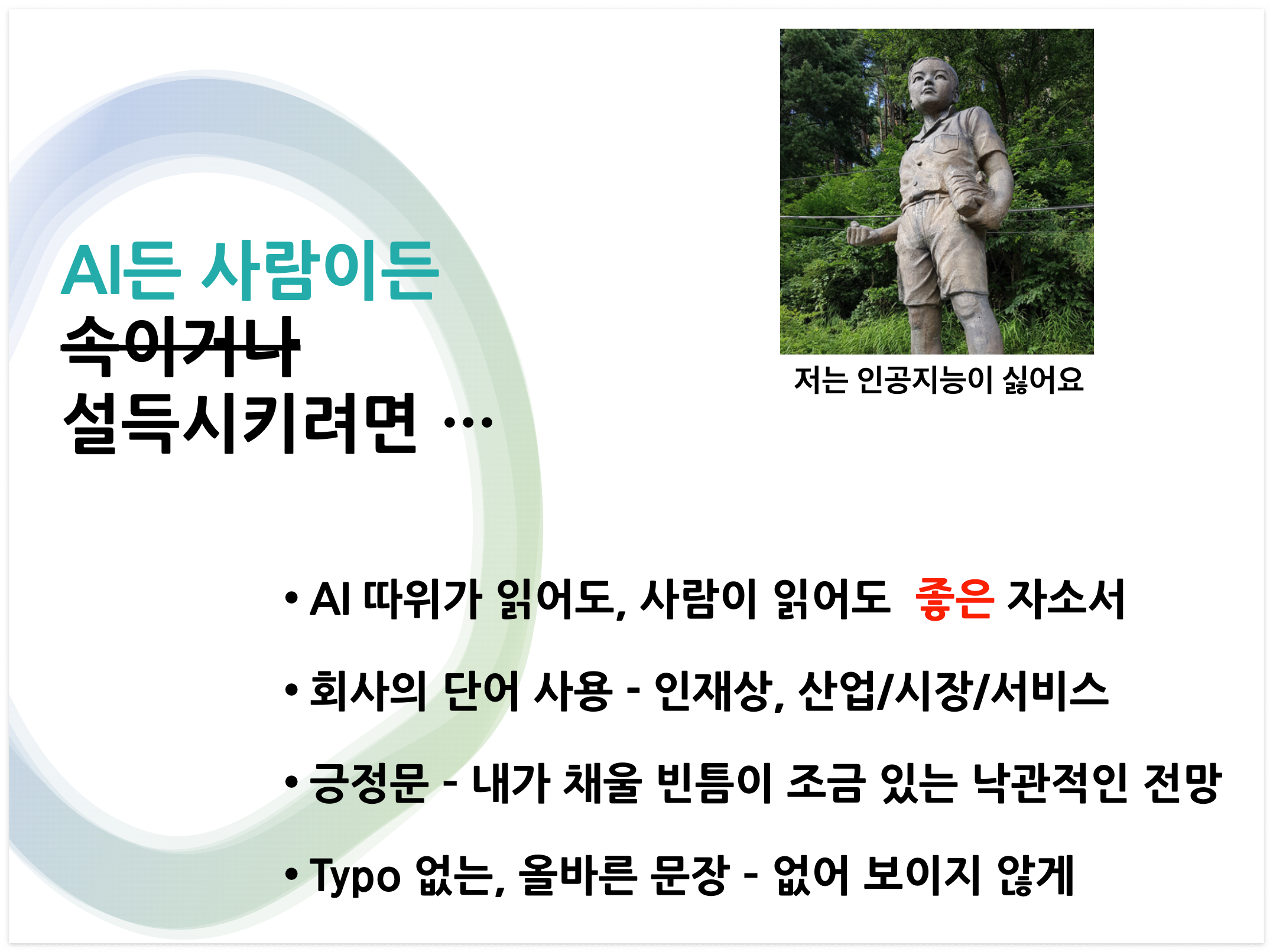 좋은 자기소개서는 AI가 읽어도 좋고, 사람이 읽어도 좋아야 합니다.